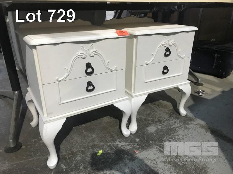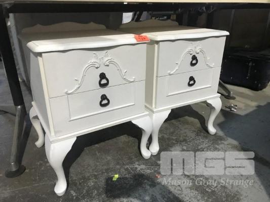 PAIR OF WHITE QUEEN ANNE STYLE BEDSIDE CABINETS, 2 DRAWER