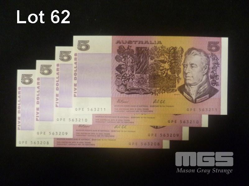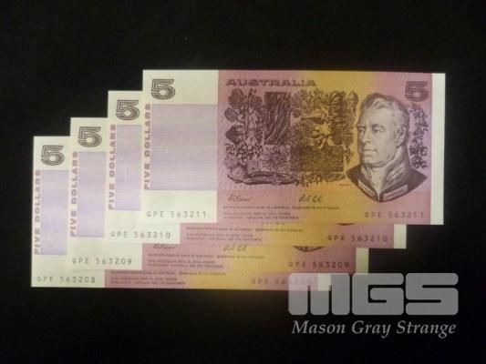 1991 4 x $5.00 NOTES CONSECUTIVE JOHNSTON COLE UNC