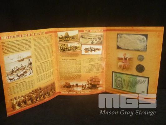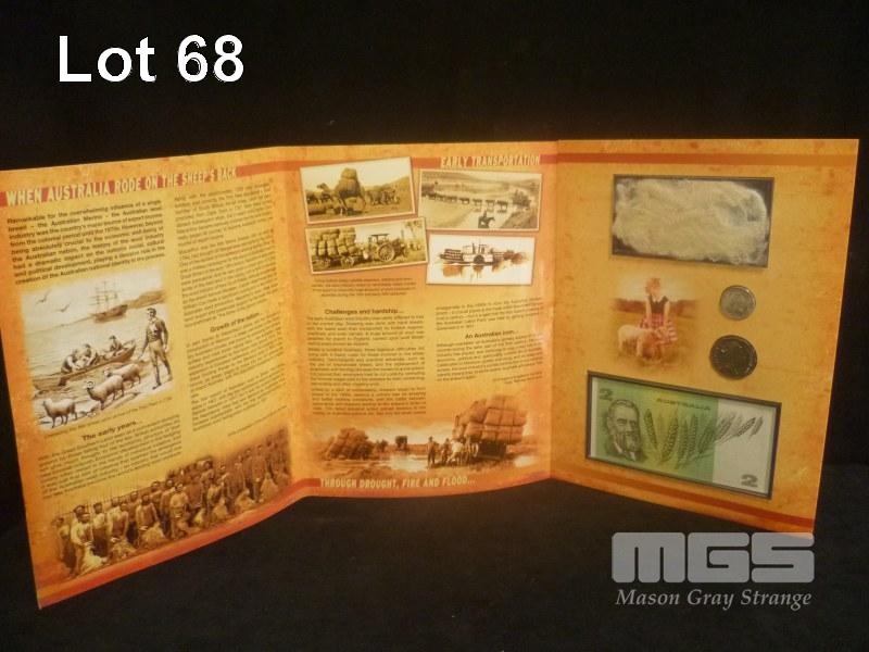 AUST GOLDEN ERA OF WOOLS COIN AND NOTE PORTFOLIO SET INCLUDES A SAMPLE OF WOOL