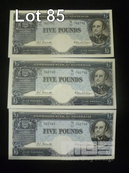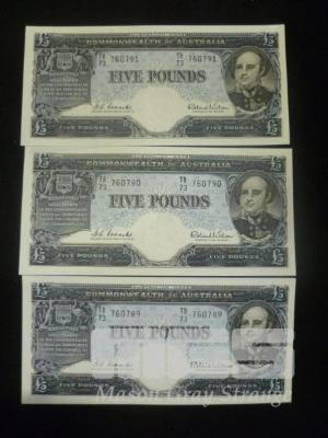 1960 3 x 5 POUND NOTE CONSECUTIVE COOMBS WILSON HIGH GRADE UNC