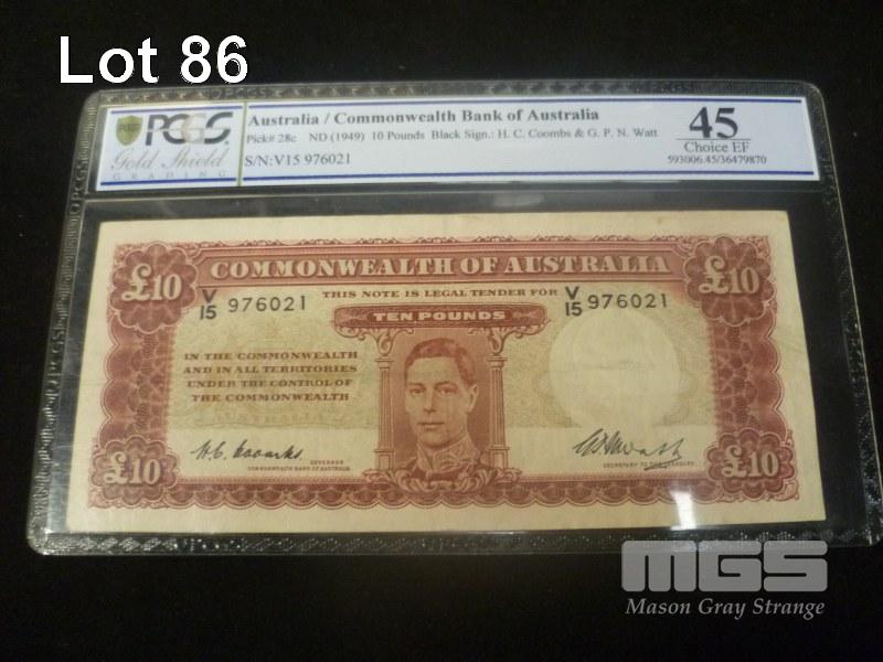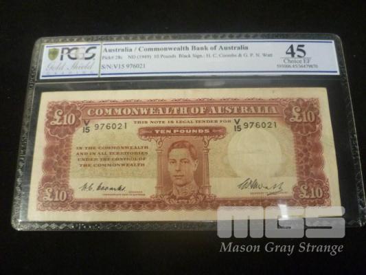 1949 10 POUND 1ST PREFIX COOMBS WATT PCGS CHOICE EF45