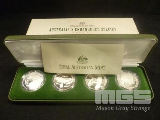 1995-1998 4 x $10 DOLLAR FINE SILVER PROOF COIN " ENDANGERED SPECIES"
