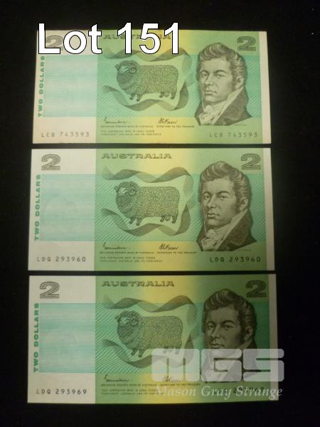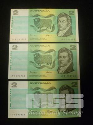 3 X AUSTRALIA, $2 PAPER BANKNOTES, JOHNSTON/FRASER,