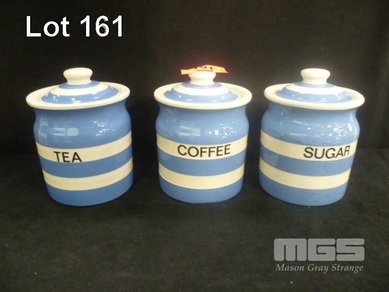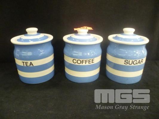 SET 3 TG GREEN, CERAMIC KITCHEN CANISTERS WITH LIDS, TEA, COFFEE, SUGAR