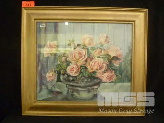 FRAMED WATERCOLOUR, ROSES, SIGNED MURIEL MOUNSTER