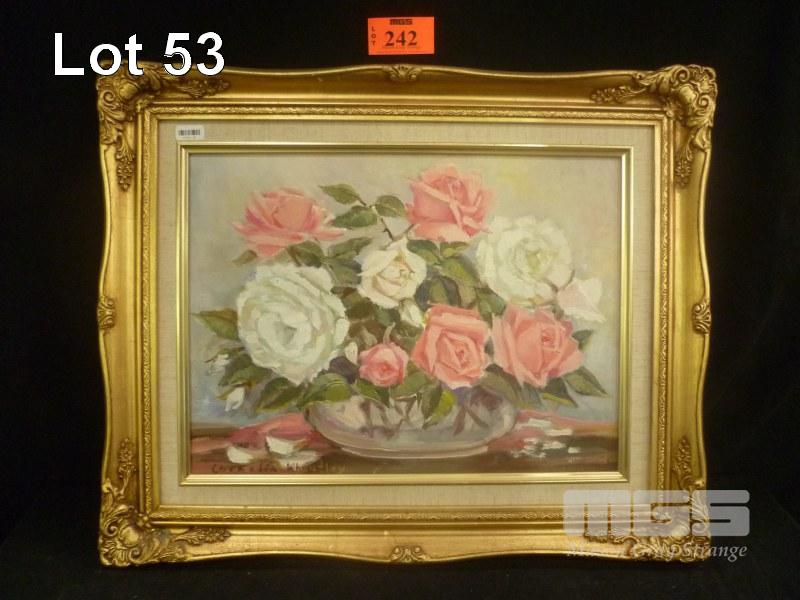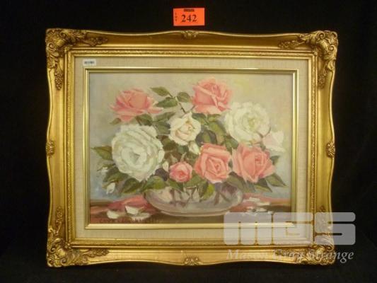 FRAMED OIL ON BOARD, ROSES, SIGNED CORNELIA WHEATLEY