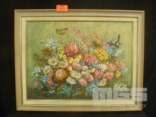 FRAMED OIL ON BOARD, AUSTRALIAN WILD FLOWERS BY CORNELIA WHEATLEY