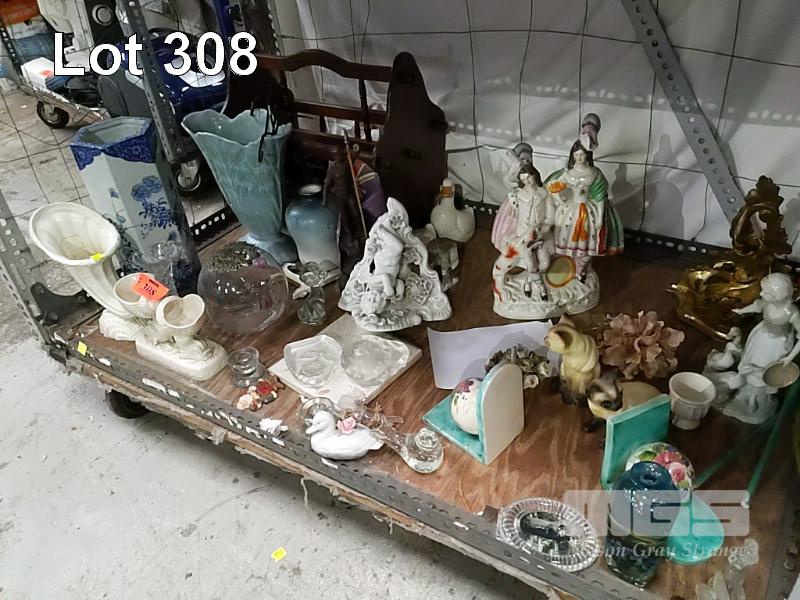 ASSORTED FINE CHINA ORNAMENTS, FIGURINES, VASES, GLASSWARE, ETC
