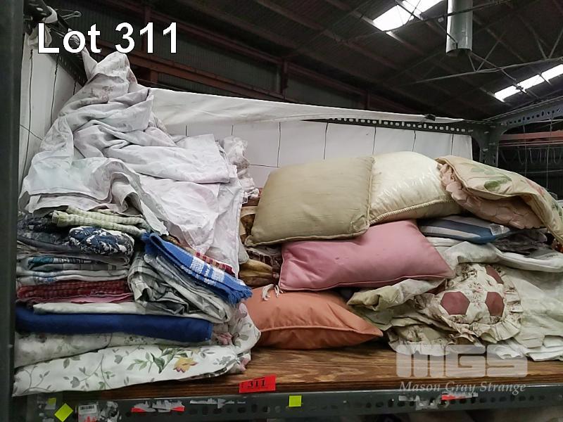 ASSORTED CUSHIONS, TEA TOWELS, ETC