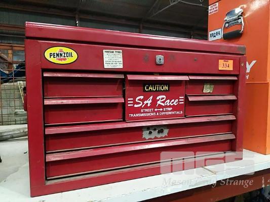 RED STEEL 8 DRAWER TOOL BOX WITH HINGED LID STORAGE COMPARTMENT