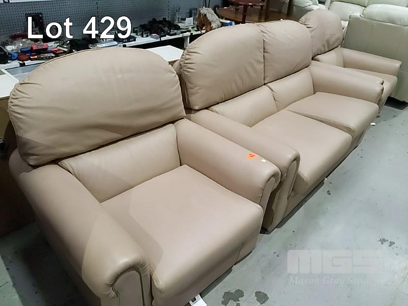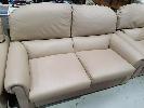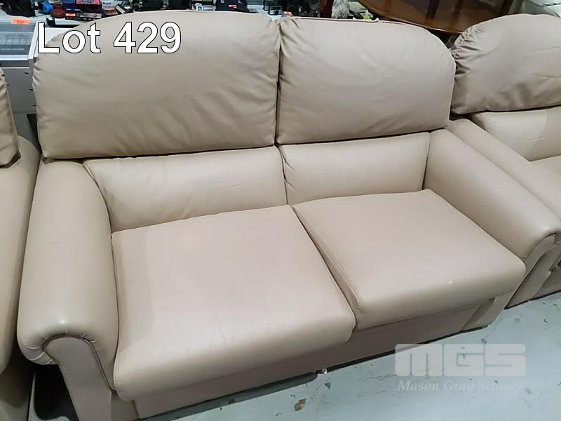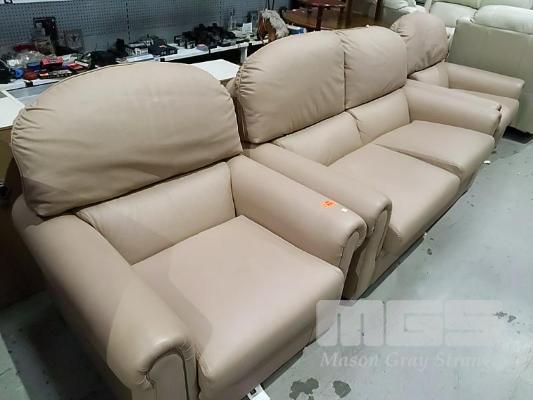 NOBLETT 3 PIECE ROLL ARM LOUNGE SUITE, COMPRISING, 1 x 2.5 SEATER & 2 x ARM CHAIRS, LIGHT BROWN LEATHER
