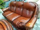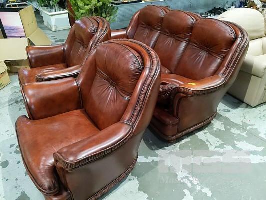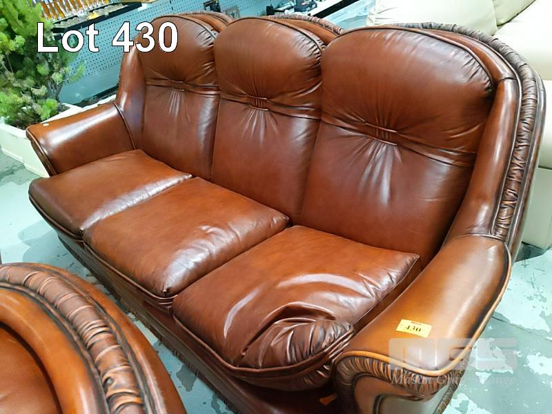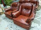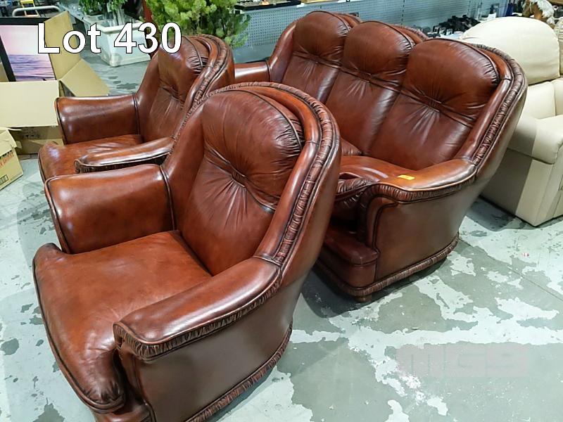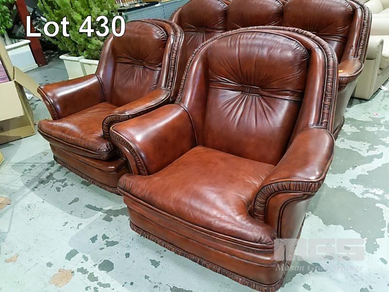 BROWN LEATHER 3 PIECE LOUNGE SUITE, CLASSIC STYLE, 1 x 3 SEATER & 2 x ARM CHAIRS