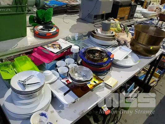 ASSORTED SERVINGWARE, DINNERWARE, ETC, 1 x TABLE