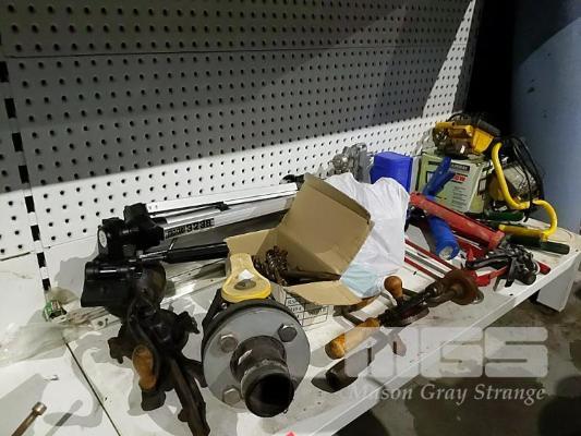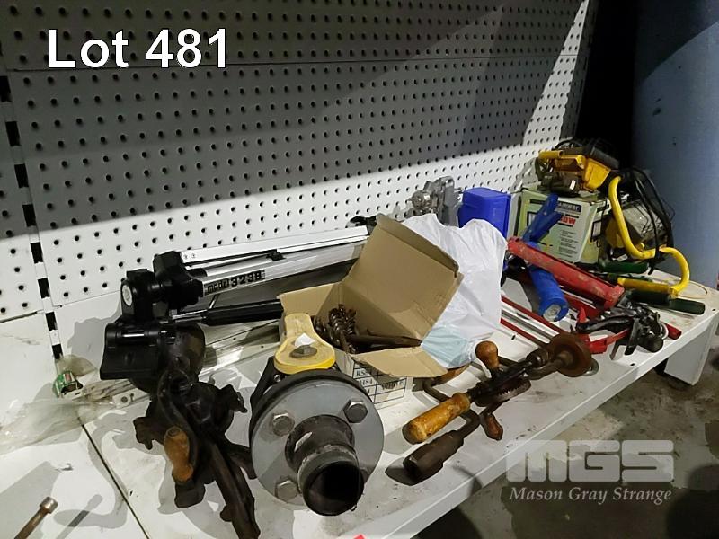 ASSORTED HAND TOOLS INC DRILL BITS, SHED LIGHTING, TRIPOD, ETC