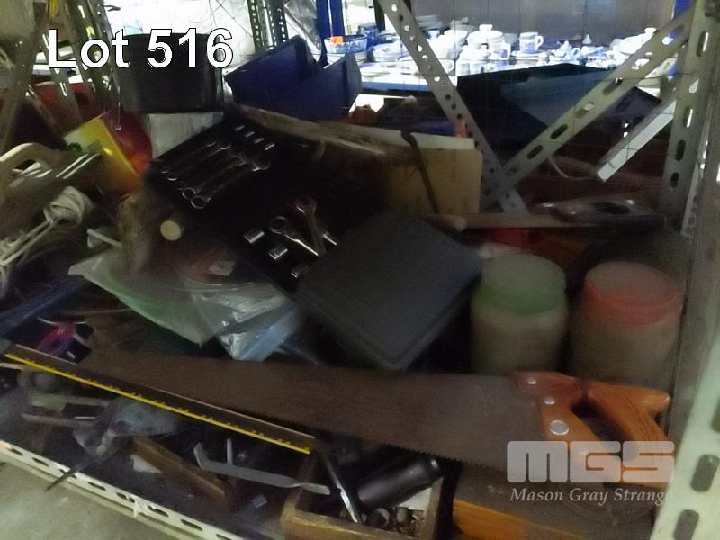 ASSORTED HAND TOOLS, ROPE, PAINT, NUTS, BOLTS SCREWS & SPANNERS, 1 x BAY