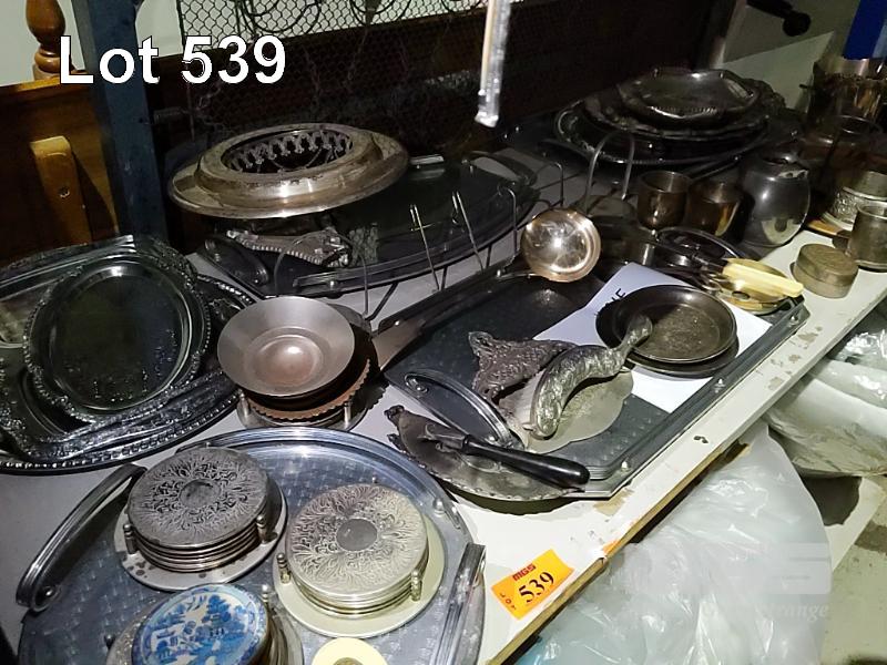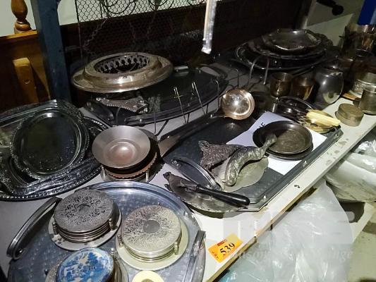 ASSORTED EPNS TABLEWARE, COPPER TRAY, ETC