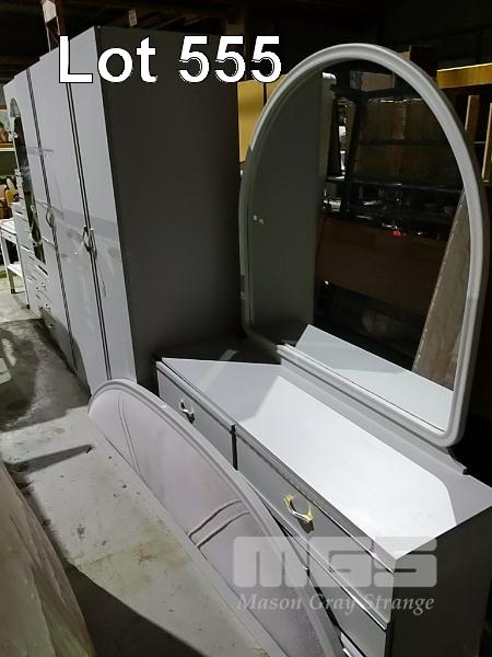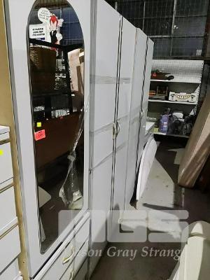 6 PIECE BEDROOM SUITE, GREY LAMINATE INC CHEST DRESSER, 2 x WARDROBES, MIRROR FRONTED WARDROBE & PAIR BEDSIDE CABINETS