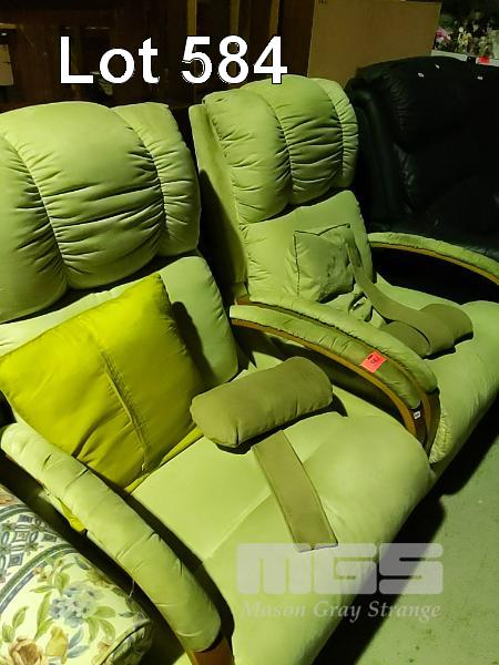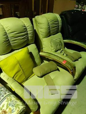 PAIR ROCKER RECLINERS, BEIGE MICROFIBRE (ARM REST REQUIRES CLEANING)