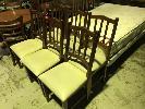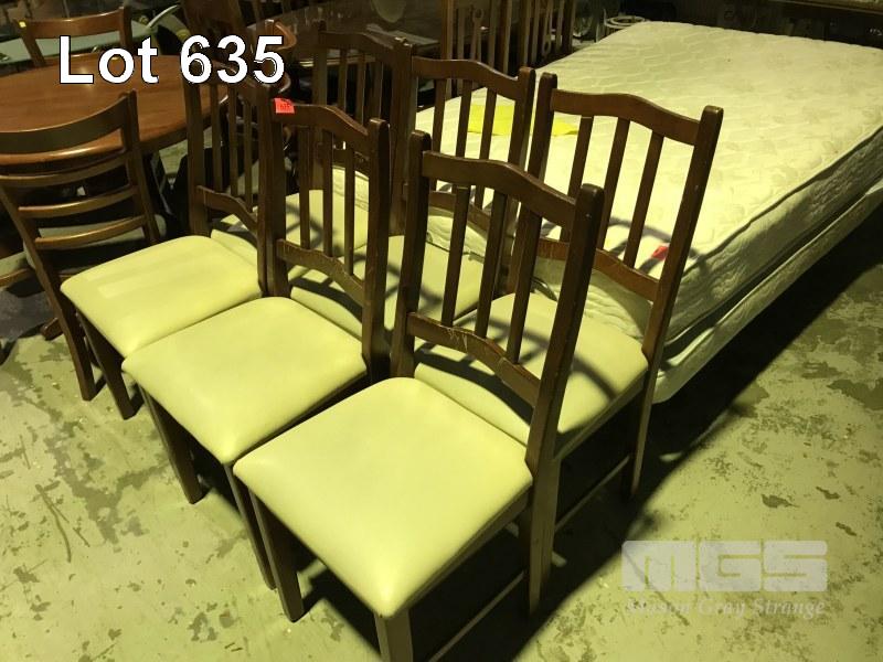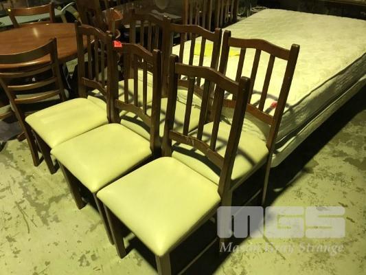 SET 6 DINING CHAIRS, TIMBER FRAME, BEIGE VINYL