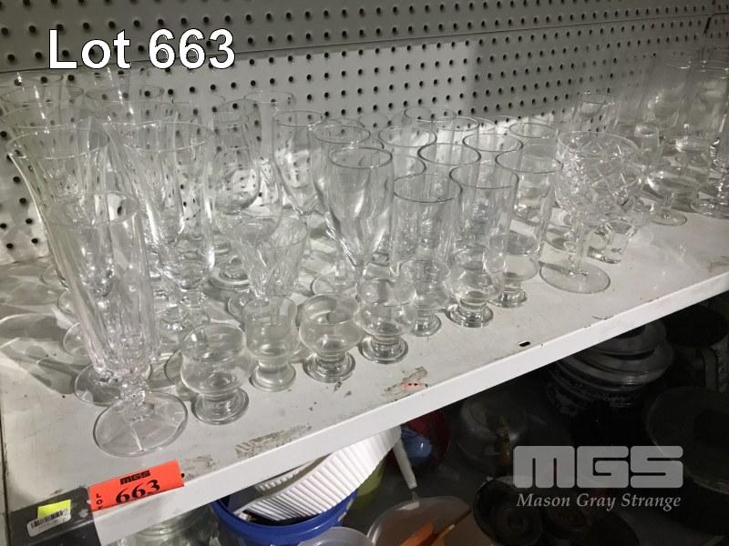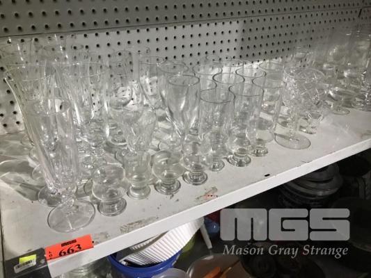 ASSORTED GLASSWARE, KITCHENWARE, HARPER SCALES, ETC, 2 x SHELVES