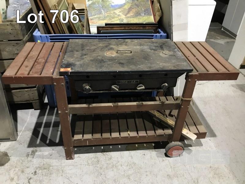 COOK ON 4 BURNER BBQ ON TIMBER TROLLEY