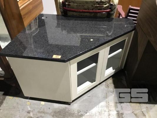 GRANITE TOPPED CORNER CABINET ON CASTOR WHEELS