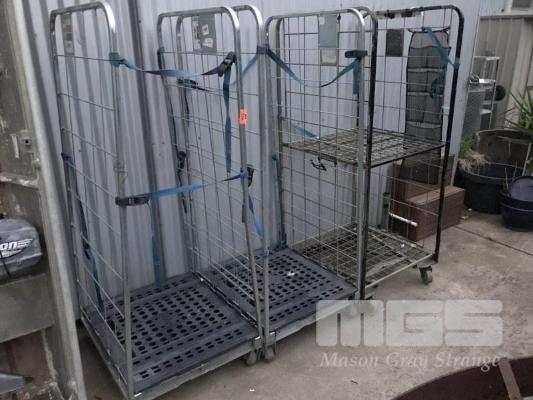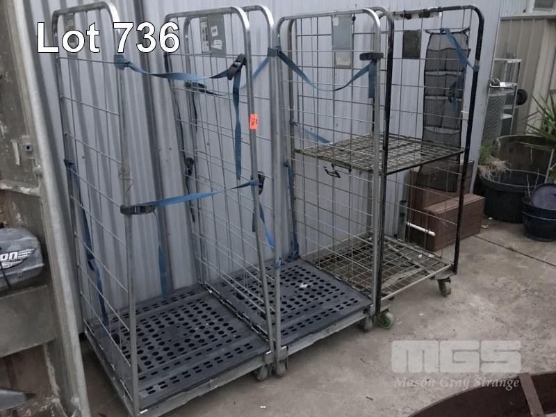 3 x GALV STEEL FRAMED, 4 WHEEL, STOCK TROLLEYS