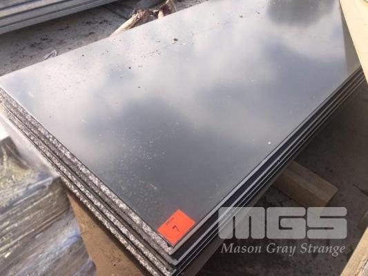 4 x FOAM WALL PANELS, 2400 x 900mm, DARK GREY STEEL, INTERLOCKING & 1 x PIECE STEEL CAPPING, 185 x 130 x 2400m, LIGHT GREY