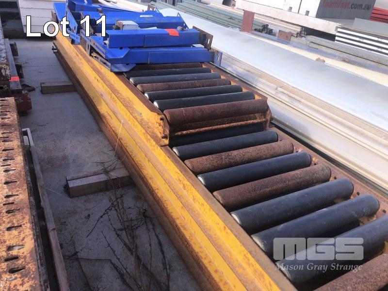 3 x SECTIONS ROLLER CONVEYOR, 380mm ROLLERS, 2 @ 3m, 1 @ 2.1m WITH 10 x ADJUSTABLE HEIGHT STANDS BY MECHANICAL HANDLING EQUIPMENT