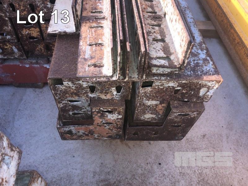 ASSORTED FORMWORK 4 x CORNER SECTIONS, 1800 x 150 x 50mm, 7 x CORNER SECTIONS 1200 x 150 x 150mm 2 x CORNER SECTIONS, 900 x 150 x 150mm & ANGLE CONNECTORS 9 x 1800mm (L) 2 x 1500mm (L) 10 x 1200mm (L) 12 x 900mm (L) 8 x 600mm (L) 2 x 300mm (L) 1 x PALLET
