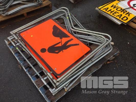 4 x ORANGE A-FRAME SIGNS, "MEN AT WORK"
