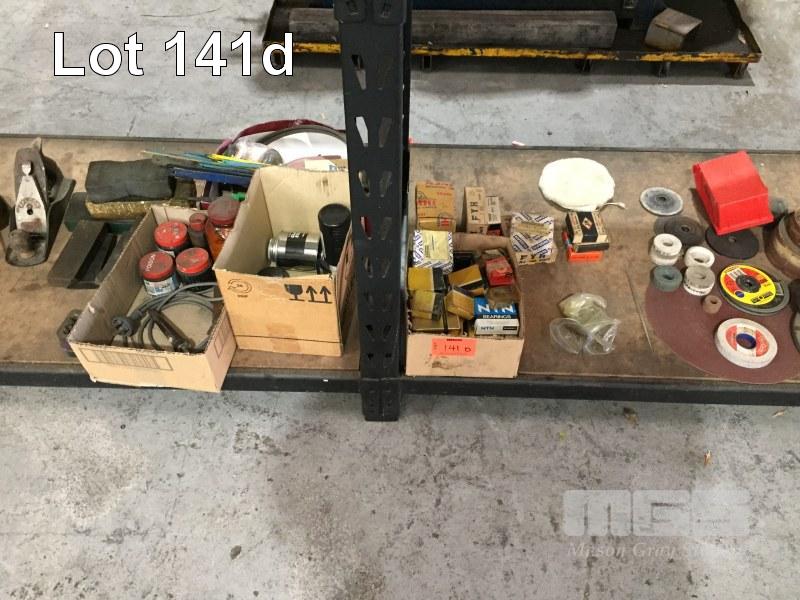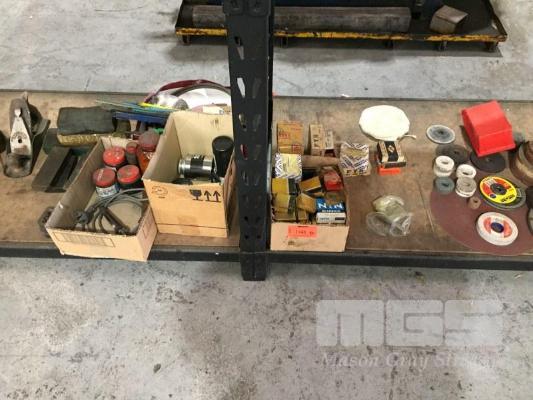 SHARPENING STONES, ASSORTED HAND TOOLS, WELDING FLUX, BEARINGS & GRINDING STONES, CONTENTS LOWER SHELF