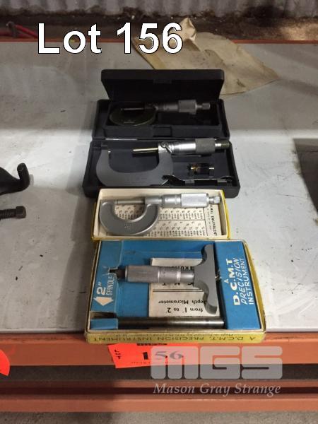 DCMT DEPTH GAUGE, 1-2", DCMT MICROMETER, 0-1" & 2 x MITUTOYO MICROMETERS, 0-1" & 1-2"