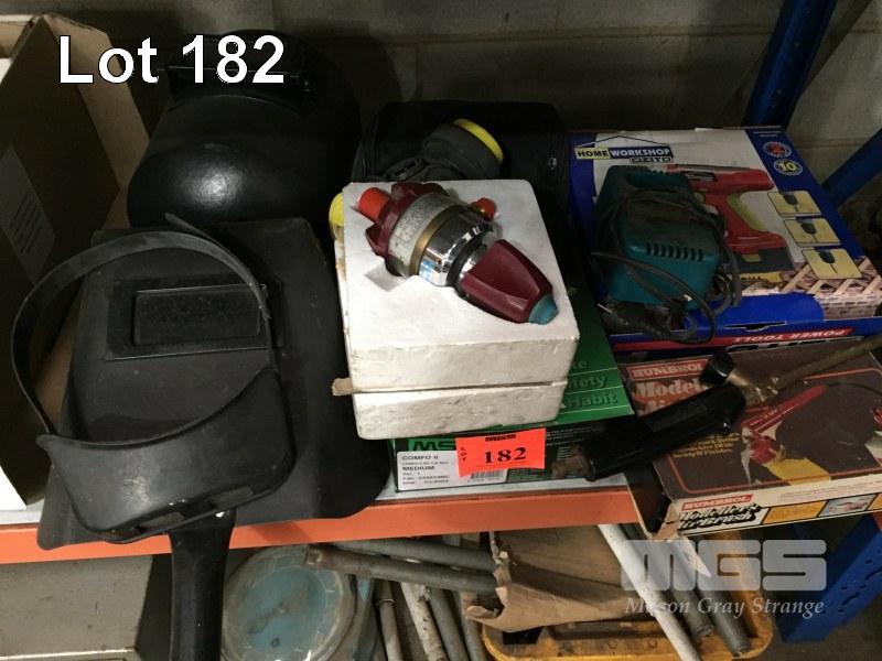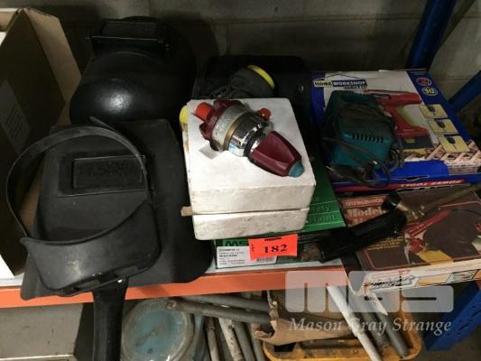 OZITO CORDLESS DRILL, 12V, ACC/REGULATOR, WELDING SHIELDS, FACE MASK, AIR BRUSH & GAS HEAT HAND PIECE