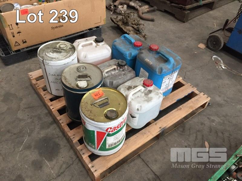 8 x PART DRUMS ASSORTED OILS, COOLANT, ETC