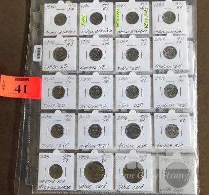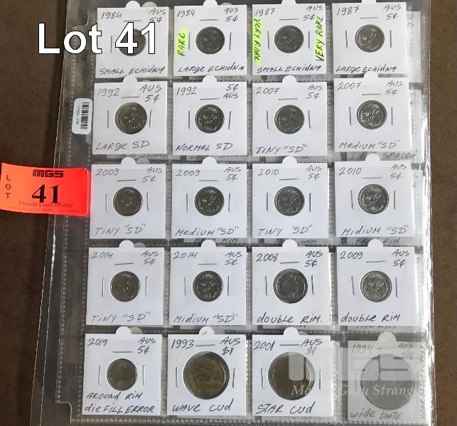 19 X AUSTRALIA, $1, 5c, ERROR COINS, INC; SMALL ECHIDNA, LARGE ECHIDNA, LARGE SD, TINY SD, MEDIUM SD, WAVE CUD, STAR CUD, ETC