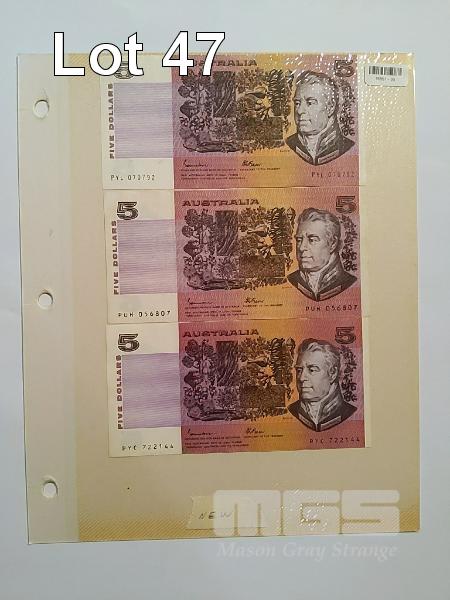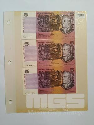 3 X AUSTRALIA, $5, PAPER, BANKNOTES, JOHNSTON/FRASER, INC; PYL 070792, PUH 056807, PYC 722144