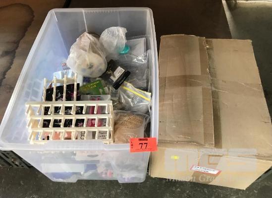 TUB OF SEWING CONSUMABLES & BOX OF VINTAGE DRESS PATTERNS