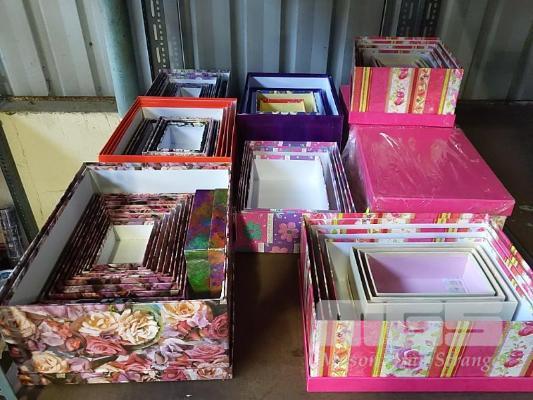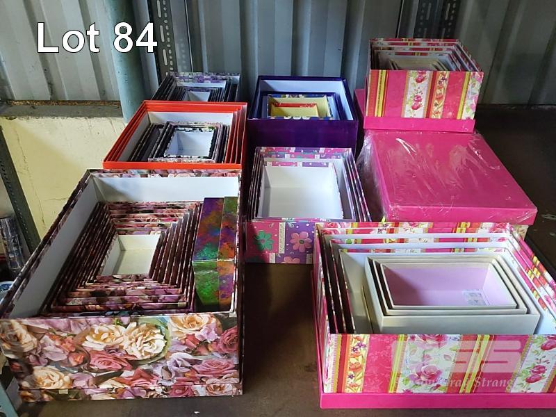 QUANTITY OF ASSORTED NESTED GIFT BOX SETS, VARIOUS SIZES AND PATTERNS. 10 x SETS, ESTIMATED 50 PLUS BOXES (1 x BAY).