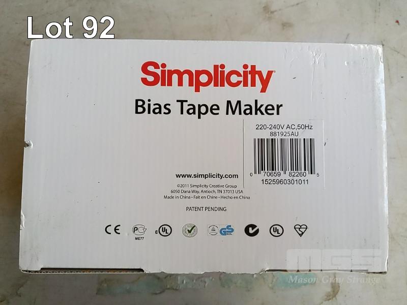 SIMPLICITY BIAS TAPE MAKER "CUSTOMISE SINGLE FOLD BIAS TAPE WITH THE PUSH OF A BUTTON!". NEW IN BOX.