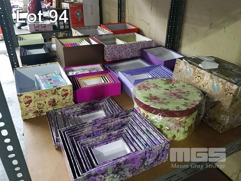 QUANTITY OF ASSORTED NESTED GIFT BOX SETS, VARIOUS SIZES AND PATTERNS. 15 x SETS, ESTIMATED 50 PLUS BOXES (2 x BAYS).