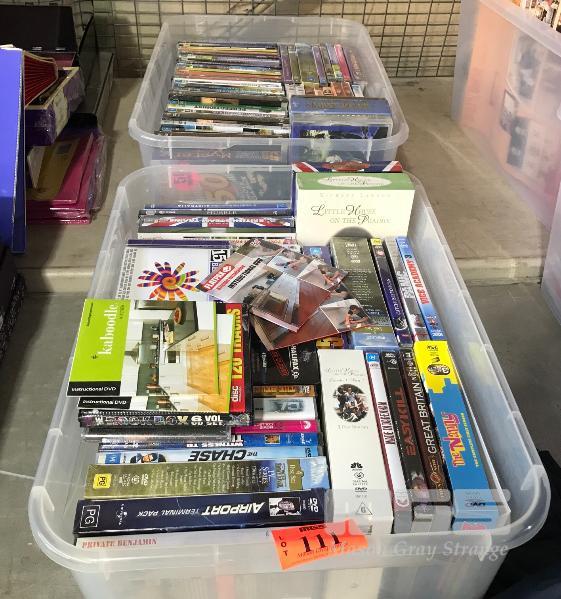 2 X TUBS CONTAINING A COLLECTION OF ASSORTED DVD TITLES, BOX SETS OF T.V SERIES, CLASSIC MOVIE TITLES ETC