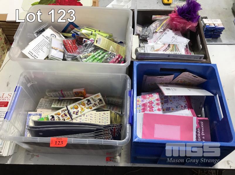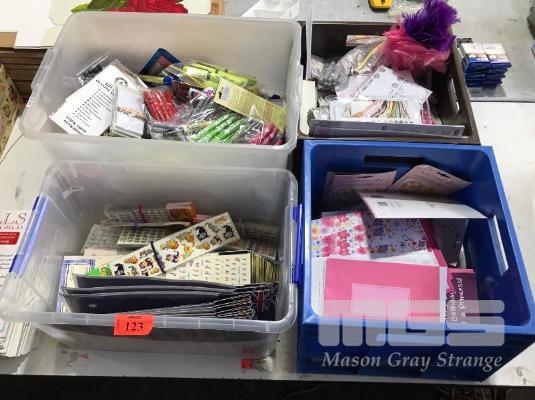 4 X TUBS OF ASSORTED KIDS ADHESIVE STICKERS, STATIONERY INC MARKERS, PENS, NOTEPADS ETC