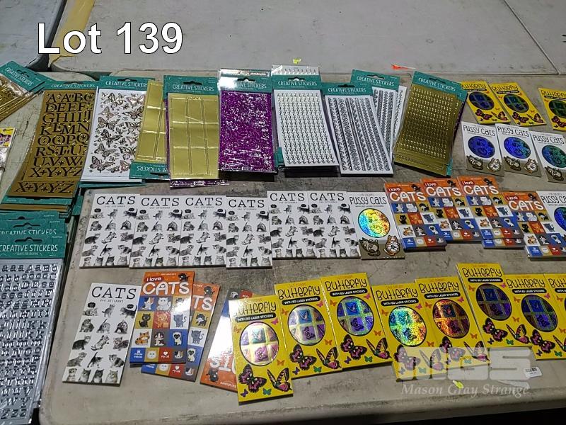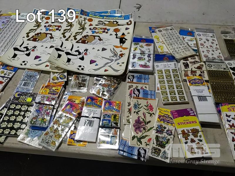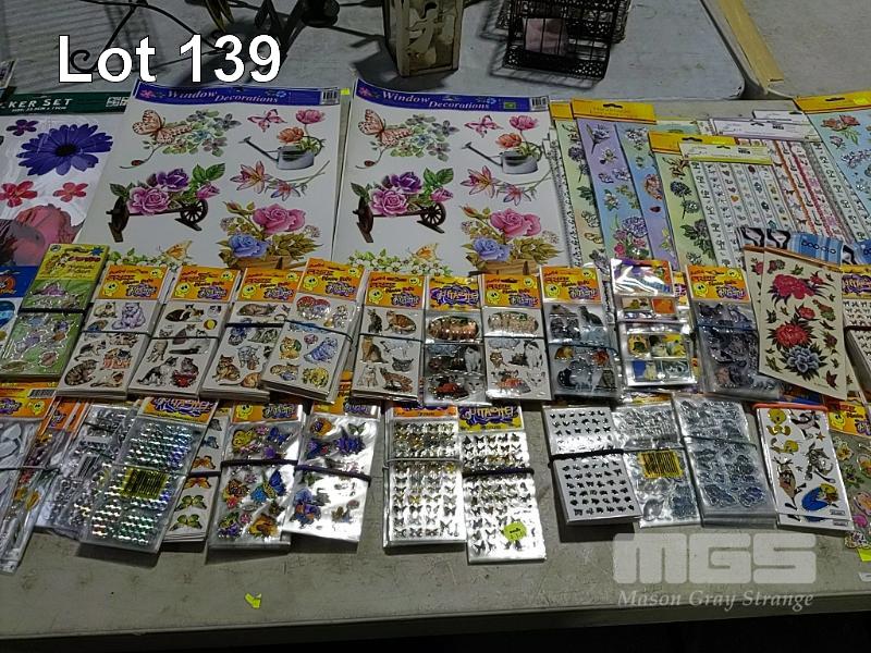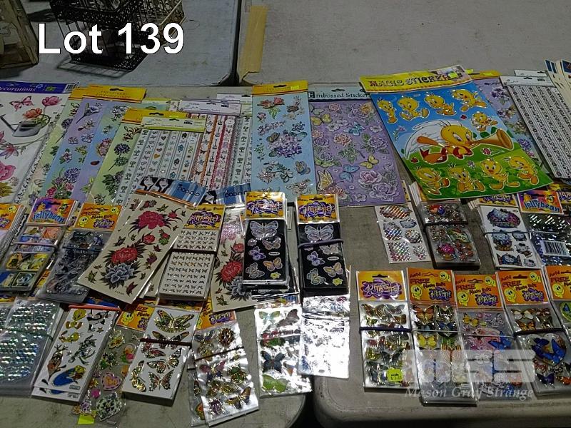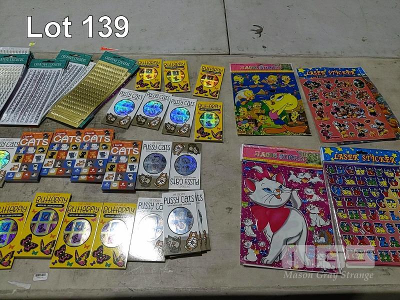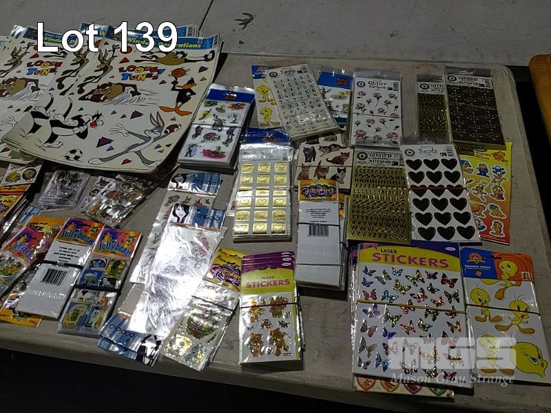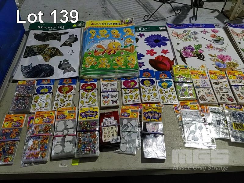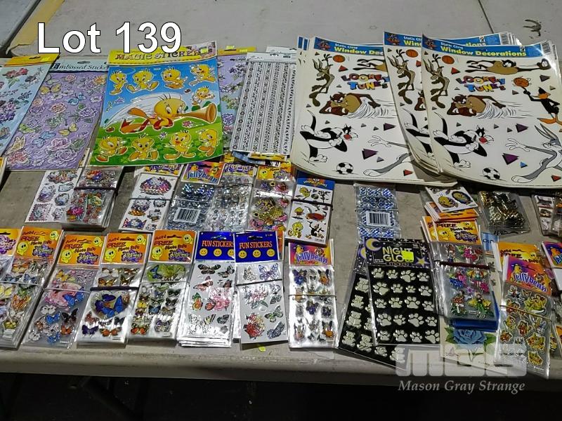 LARGE QUANTITY OF STICKERS. WINDOW STICKERS, NAIL STICKERS, DECORATIVE BORDERS, EMBOSSED STICKERS, GLITTER STICKERS, GIFT SEALS ETC. A LOT OF CATS, FLOWERS, BUTTERFLIES, TONS OF LOONEY TUNES, DISNEY AND MUCH MUCH MORE. ESTIMATED HUNDREDS (1 x TUB).