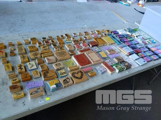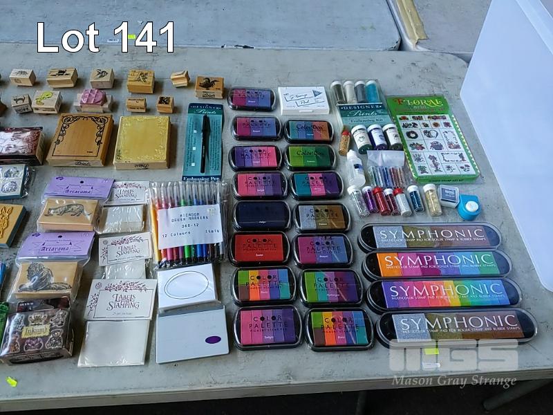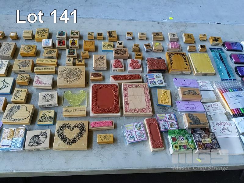 QUANTITY OF SCRAPBOOKING RUBBER STAMPS, SILICONE STAMPS, STAMP PADS, EMBOSSING KITS, BRUSH MARKERS & PENS AND MORE. ESTIMATED 100 ITEMS PLUS (1 x TUB).