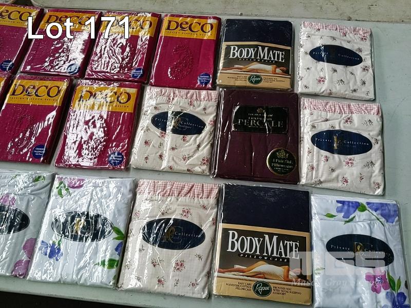 LARGE QUANTITY OF PILLOW CASES AND PILLOWCASE PAIRS FROM "HOME FASHIONS PRIVATE COLLECTION", "FREEDOM", "DECO", "ACTIL", "LOGAN & MASON", "AYTON MANOR" AND MORE. 41 ITEMS ALL UNOPENED IN ORIGINAL PACKAGING (1 x TUB).