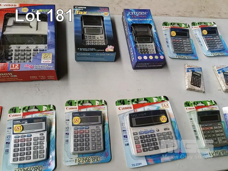 COLLECTION OF ELECTRONIC CALCULATORS. COMPACT DESK CALCULATORS, PRINTING DESKTOP CALCULATORS, POCKET CALCULATORS AND EVEN A CLIP CALCULATOR. ALL NEW IN ORIGINAL PACKAGING UNOPENED. 16 ITEMS. (1 x MILK CRATE - CRATE NOT INCLUDED).