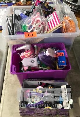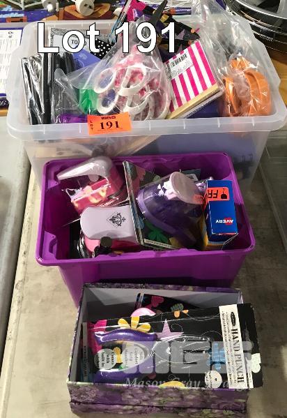 2 X PLASTIC TUBS CONTAINING OFFICE STATIONERY & SUPPLIES, ASSORTED HOME WARES ETC