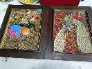 COLLECTION OF WALL ART INCLUDING CARVED ORIENTAL SCENES.