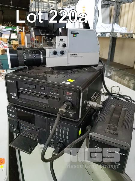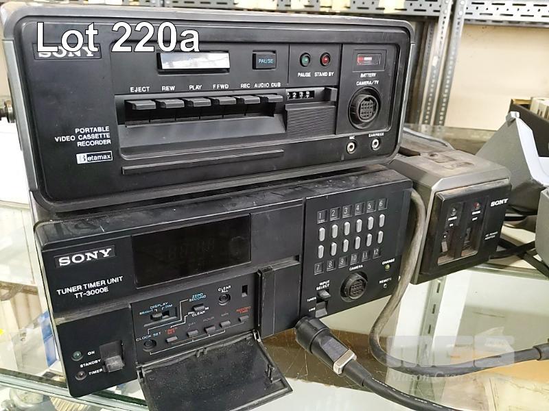 VINTAGE SONY BETAMAX PORTABLE VIDEO CASSETTE RECORDER (SL-3000E) WITH COMPANION TUNER TIMER UNIT (TT-3000E), AC POWER ADAPTOR (AC-300C) AND SONY "TRINICON" VIDEO CAMERA (HVC-200PE), VIDEO CAMERA CASE AND 70 x BETA VIDEO CASSETTES.